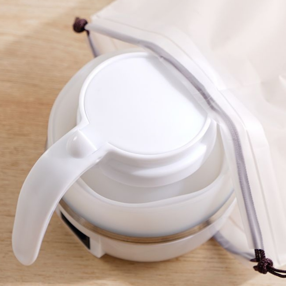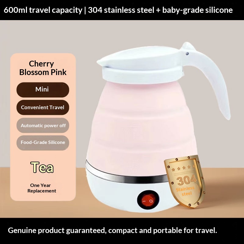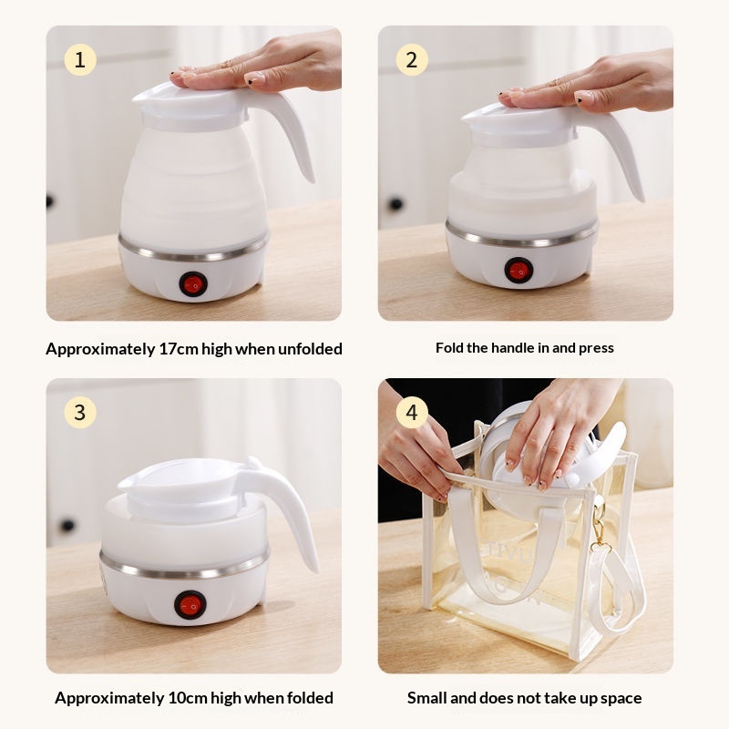 Product information: Additional features: Foldable and detachable for easy cleaning Portable Outdoor Folding Electric Kettle Package contents: Appliance, base, user manual, power cord Portable Outdoor Folding Electric Kettle Function: Dry-boil protection Portable Outdoor Folding Electric Kettle Colors: Silicone-lined foldable kettle [white], silicone-lined foldable kettle Portable Outdoor Folding Electric Kettle [pink], silicone-lined foldable kettle [blue] Portable Outdoor Folding Electric Kettle Capacity: 0.6 L Portable Outdoor Folding Electric Kettle Material: Stainless steel + silicone + PP Product dimensions: Expanded—180 mm (height) x 165 mm x 120 mm; Collapsed—120 mm (height) x 165 mm x 120 mm Operation: Button-controlled